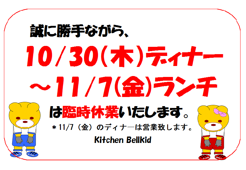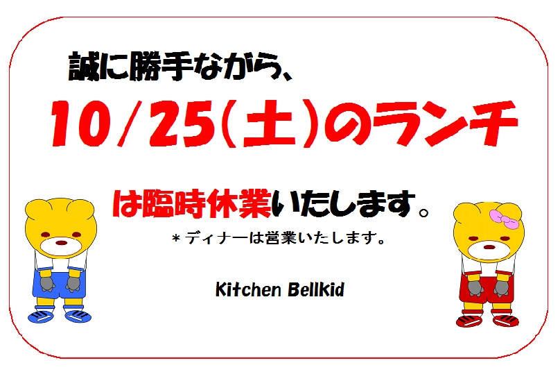 急なお知らせとなってしまい大変申し訳ございません。<m(__)m> 予報では微妙な感じのお天気ですが 明日、孫の運動会が開始時間を早めて開催されることになりましたので ランチのみ臨時休業とさせていただきます。 ご迷惑をお掛けいたしますが 何卒ご了承くださいますようお願い申し上げます。 &…