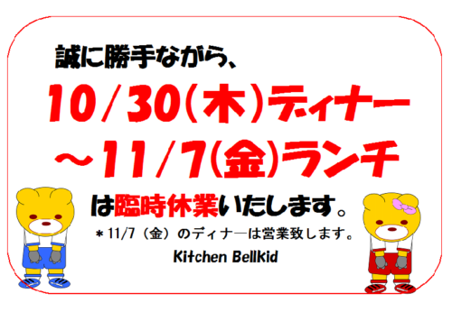 急なお知らせになってしまい申し訳ございません。 孫の合唱コンクール観覧の為、休業日を変更させていただきます。 三連休お出
